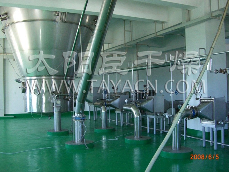 該機(jī)采用全封閉形式,所有部件均采用不銹鋼制造,配有三級(jí)凈化裝置,過(guò)濾后的空氣達(dá)十萬(wàn)級(jí)要求。筒體與頂部裝有冷壁裝置,使壁溫<80℃,干燥塔內(nèi)裝有氣刷掃塔裝置。經(jīng)該機(jī)干燥后的中藥浸膏粉,不會(huì)出現(xiàn)焦化變質(zhì)現(xiàn)象,大大增加了收粉率(95%以上),而且不會(huì)產(chǎn)生混藥現(xiàn)象和粘壁現(xiàn)象。  …